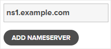 6. Navigate to the Add Nameserver section and enter our nameserver in the text field (for example, ns1.example.com). Then click on Add Nameserver. Repeat this to add our second nameserver.