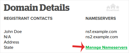 5. Scroll down to the Nameservers section and click Manage Nameservers.