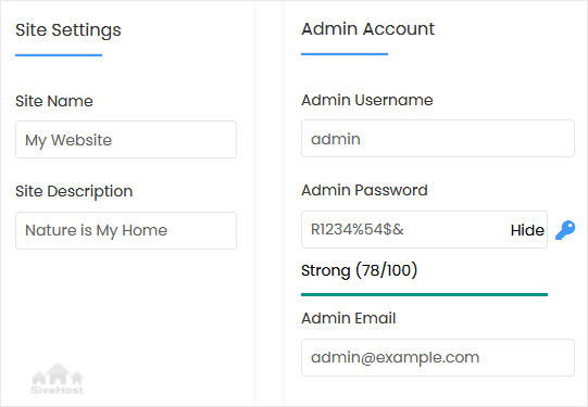 - Admin Email: Your e-mail address.