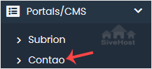 4. On the left side, locate the Portal/CMS category. Click on it and then on the Contao link that appears.