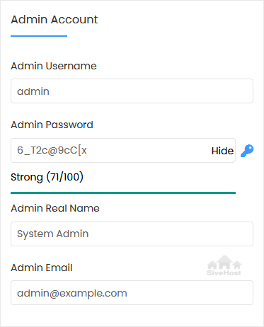 • Admin Real Name: Leave this as it is or use your full name.