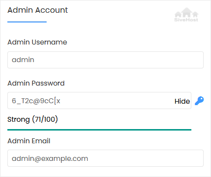 • Admin Username: Your new Kirby username (for security reasons, do not use the administrator or the admin username).