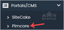 4. On the left side, locate the Portal/CMS category. Click on it and then on the Pimcore link that appears.