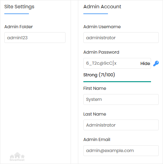 - Admin Email: Your email address. It is helpful for admin account password reset, notification, etc.